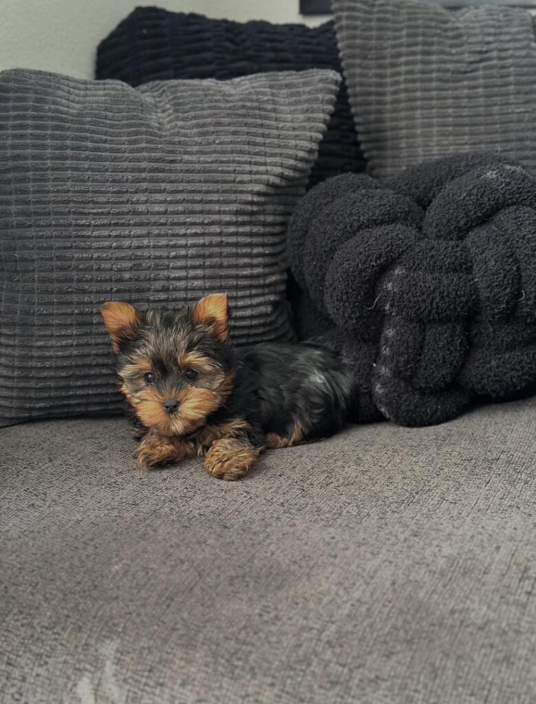 Hi, I’m Angie! I’m a sweet and curious little Yorkshire Terrier with a shiny black and tan coat. I was born on August 29, which makes me a proud Virgo full of personality, love, and charm! Once I’m big enough to leave my litter, I’ll be ready to join my forever family after October 24. I may be small, but my heart is huge! I can’t wait to bring endless love, cuddles, and tail-wagging joy into a home that’s ready to welcome me as part of the family